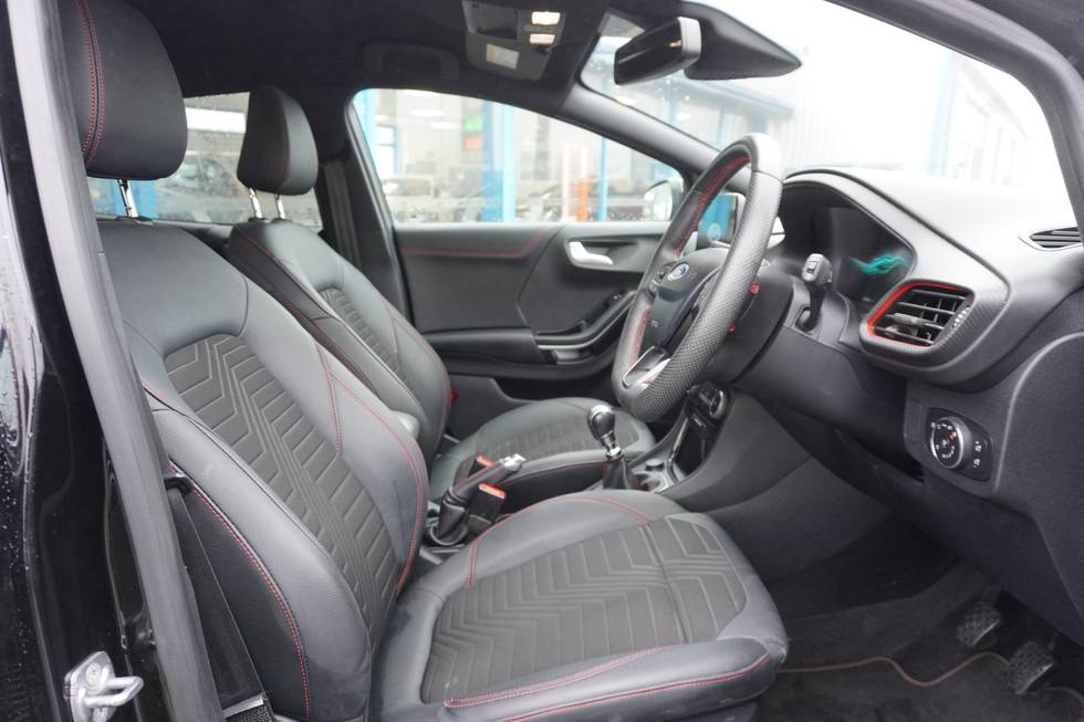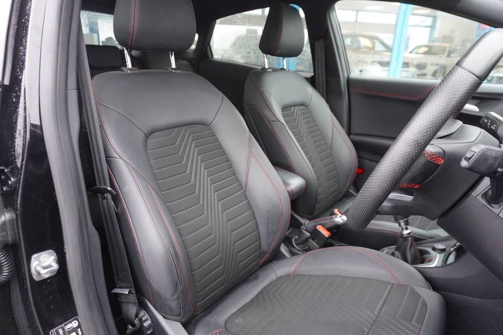 • ST-Line flat bottomed sensico leather steering wheel with leather handbrake and aluminium gear knob