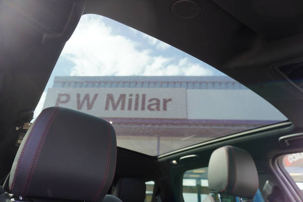 - Fixed panoramic sunroof with powered sunblind