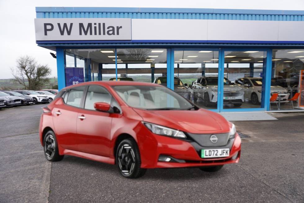 Flame Red, 1 Owner, Nissan Franchise-Serviced, Spare Key & Charging Cable Supplied. Great Rates on PCP & HP Car Finance are available. A free, no-obligation finance check is available on our website. Free HPI Certificate Provided. P.W. Millar Ltd. is a family-owned and operated business established in 1970.
