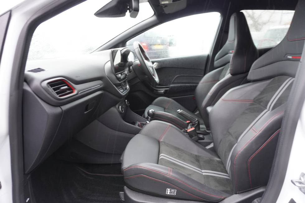 - Ford Performance sensico partial premium leather upholstery with red stitching