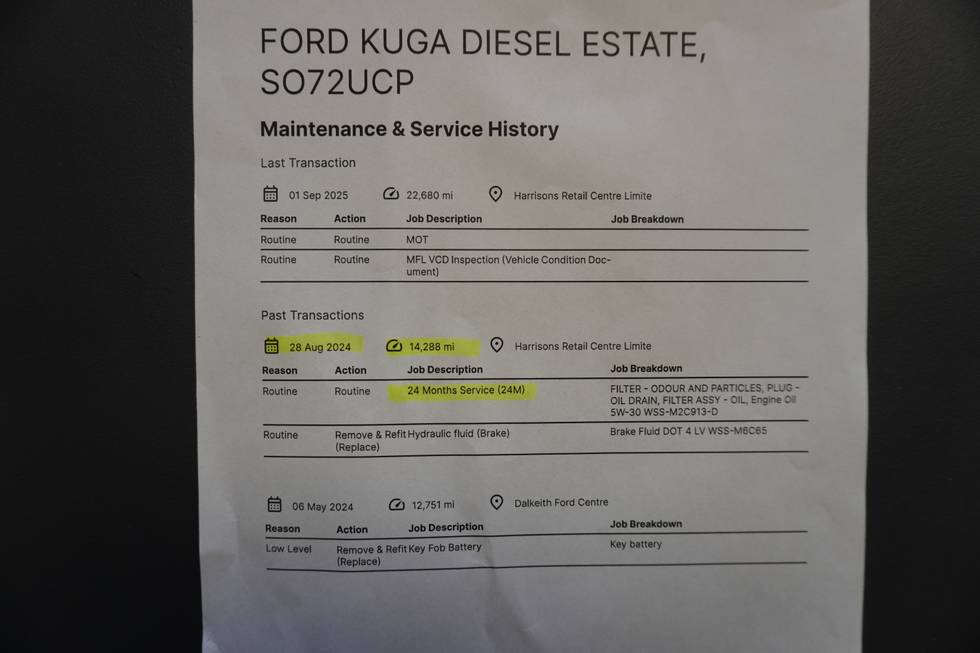 - Service mileage 18,000 miles