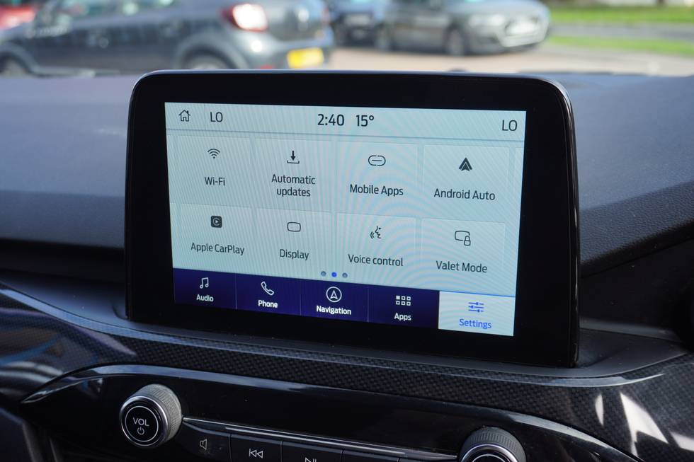 - ST Line body styling kit with unique front and rear fascia and bumper, rear painted diffuser, front painted skid plates, dark mesh upper grille