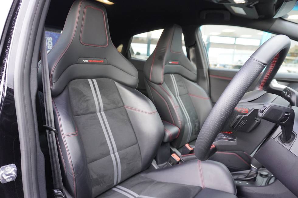 - Ford Performance sensico partial premium leather upholstery with metal grey stitching