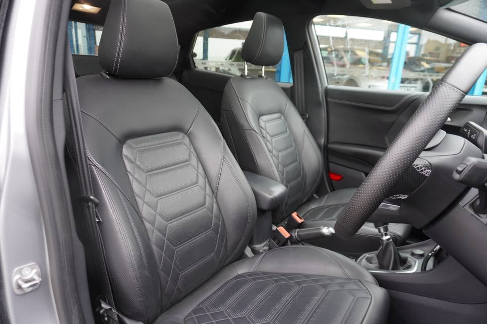 - Premium sensico leather upholstery with metal grey stitching