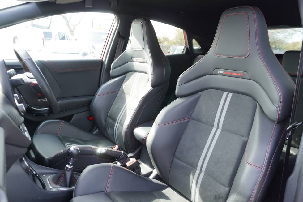 - Ford Performance sensico partial premium leather upholstery with metal grey stitching