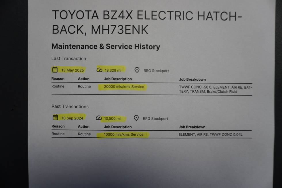 - Service mileage 10,000 miles